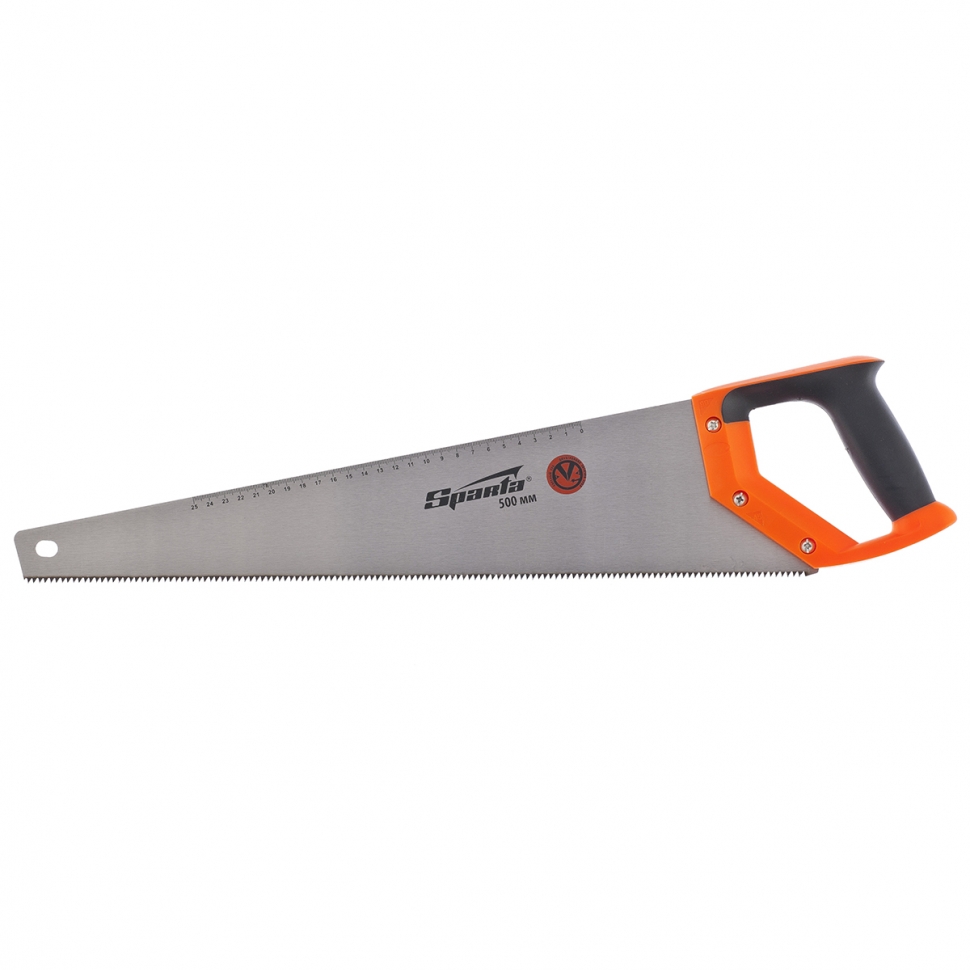 Трион за дърво 400 mm 7-8 TPI, 2D-зъби SPARTA 235035 е изработен от легирана стомана марка 65 Mn. Листът на инструмента има зъб с двустранно заточване. Зъбите на триона са закалени. Количество зъби на дюйм – 6. Твърдост на зъбите – 55 HRc. Върху повърхността има разграфена линийка спомагаща при оразмерявен на детайла преди рязяне. Ергономичната двукомпонентна дръжка от пластмаса значително облекчава усилията в процеса на работа и улеснява рязането с триона.